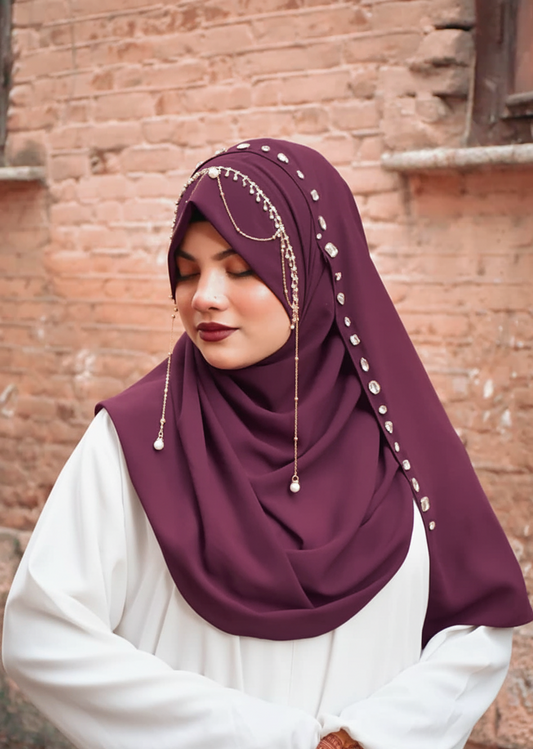 Habibi Queen Hijab: Ready-to-Wear Instant Hijab with Embellished Chain Detailing