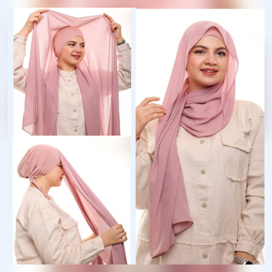 Flowy Chiffon Hijab with attached cap - Soft Chiffon Hijab