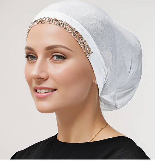 Beads Silk Hijab with attached cap - Women fancy hijab