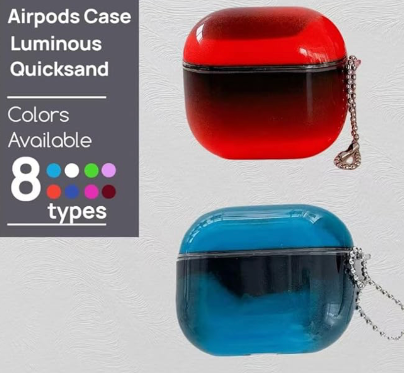 - Luminous Quicksand Effect:The case features a fun liquid quicksand design that creates a glowing neon effect in the dark, making your Airpods stand out.