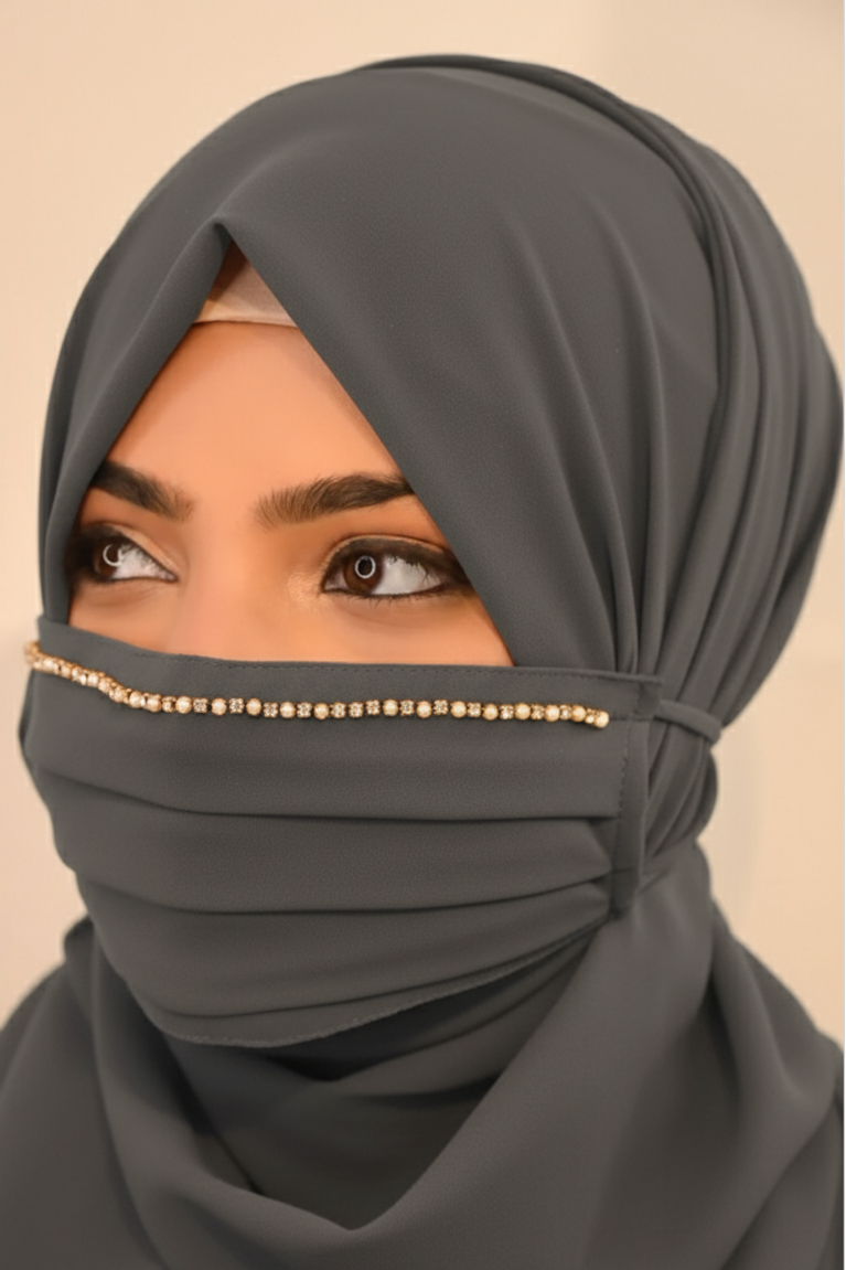 Hijab Friendly Mask – Premium Niqab Alternative Face Mask Pakistan | 3-Layer Breathable, Button Elastic, Stylish Daily & Party Wear
