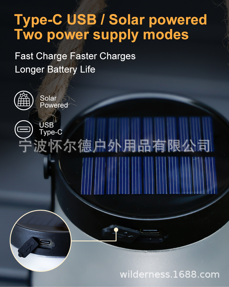 New Solar Hemp Rope Flame Lamp Hanging Outdoor Camping Lamp Charging Courtyard Decoration Multi-function Lighting Lamp