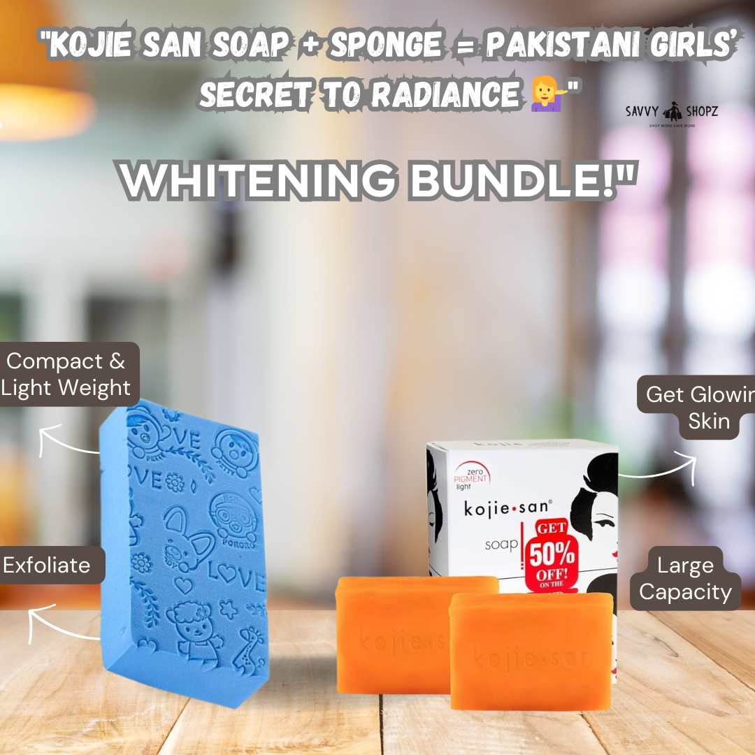Say goodbye to dull, dark, and rough skin! This powerful skincare duo – Kojie San Whitening Soap and a Deep Exfoliating Body Sponge – works together to brighten, exfoliate, and smooth your skin from the very first use.