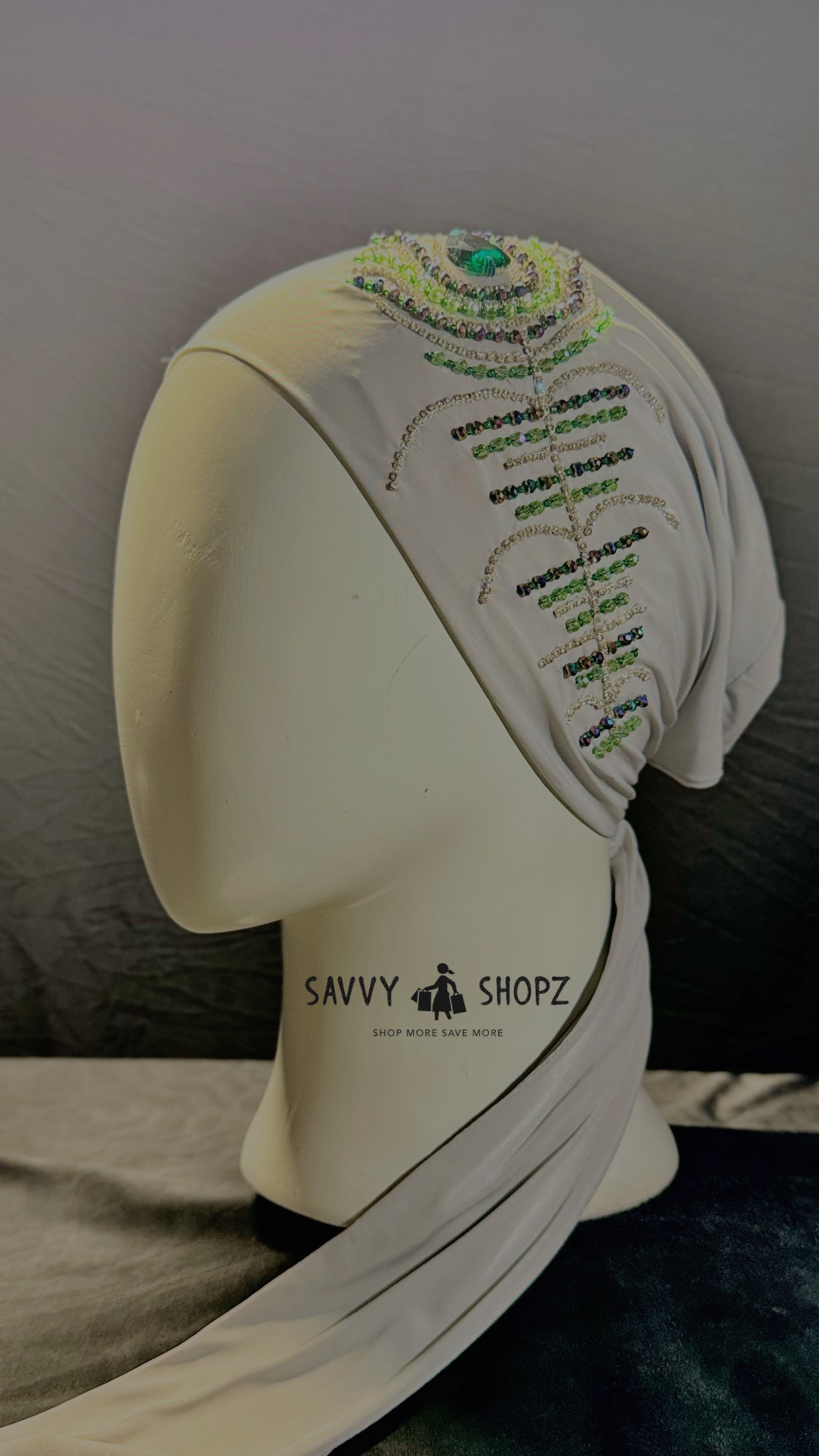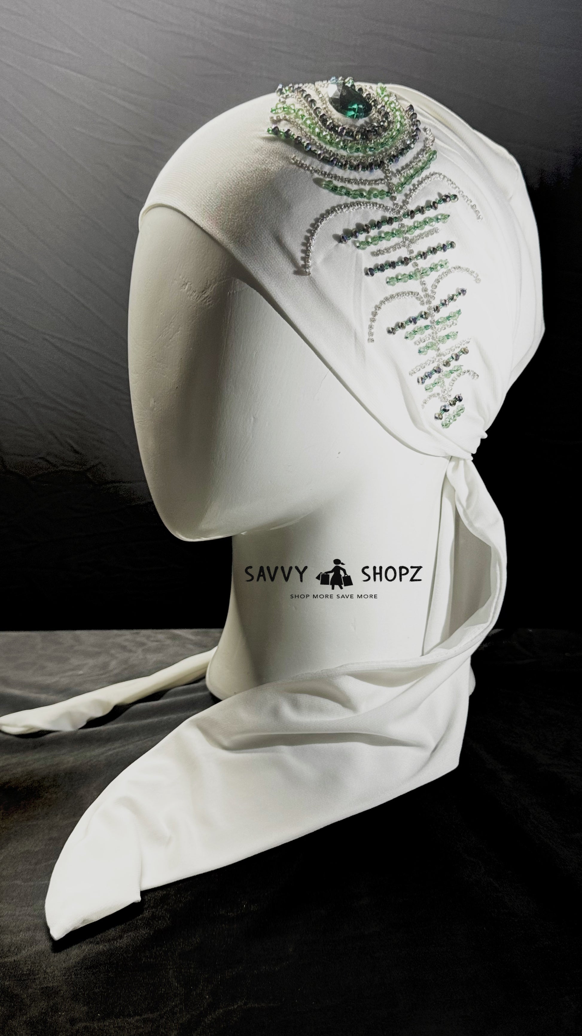 ✨ Exquisite Embellishments – Adorned with peacock-inspired crystal and pearl embroidery, this hijab exudes sophistication, making it perfect for special occasions, formal events, or bridal wear.